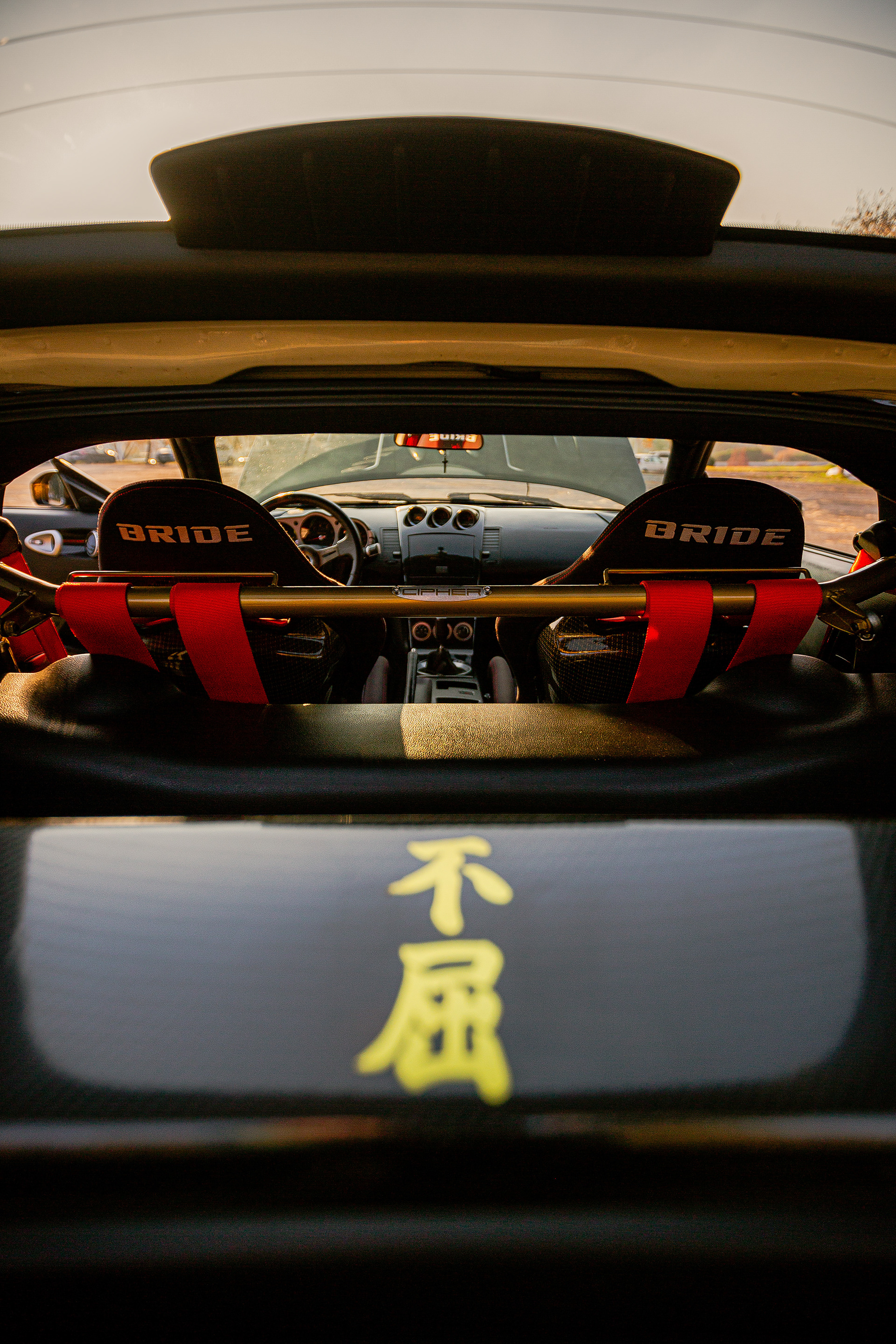 Uno de los detalles más interesantes de este auto es la utilización de un símbolo japonés en Kanji, el cual evoca la perseverancia. Aunque es un gesto elegante, representa todo el esfuerzo y sacrificio que hay detrás de cada proyecto. Nos recuerda que los sueños se persiguen y que es posible verlos cumplidos. Como si fuera poco, una pequeña firma combina perfectamente con la paleta cromática del Z. Esta firma es la propia firma de José, simbolizando su propio legado sobre esta plataforma, honrando su trabajo e historia con él, escribiendo su propia leyenda y convirtiendo a este 350Z Z33 en un auto único en el mundo.